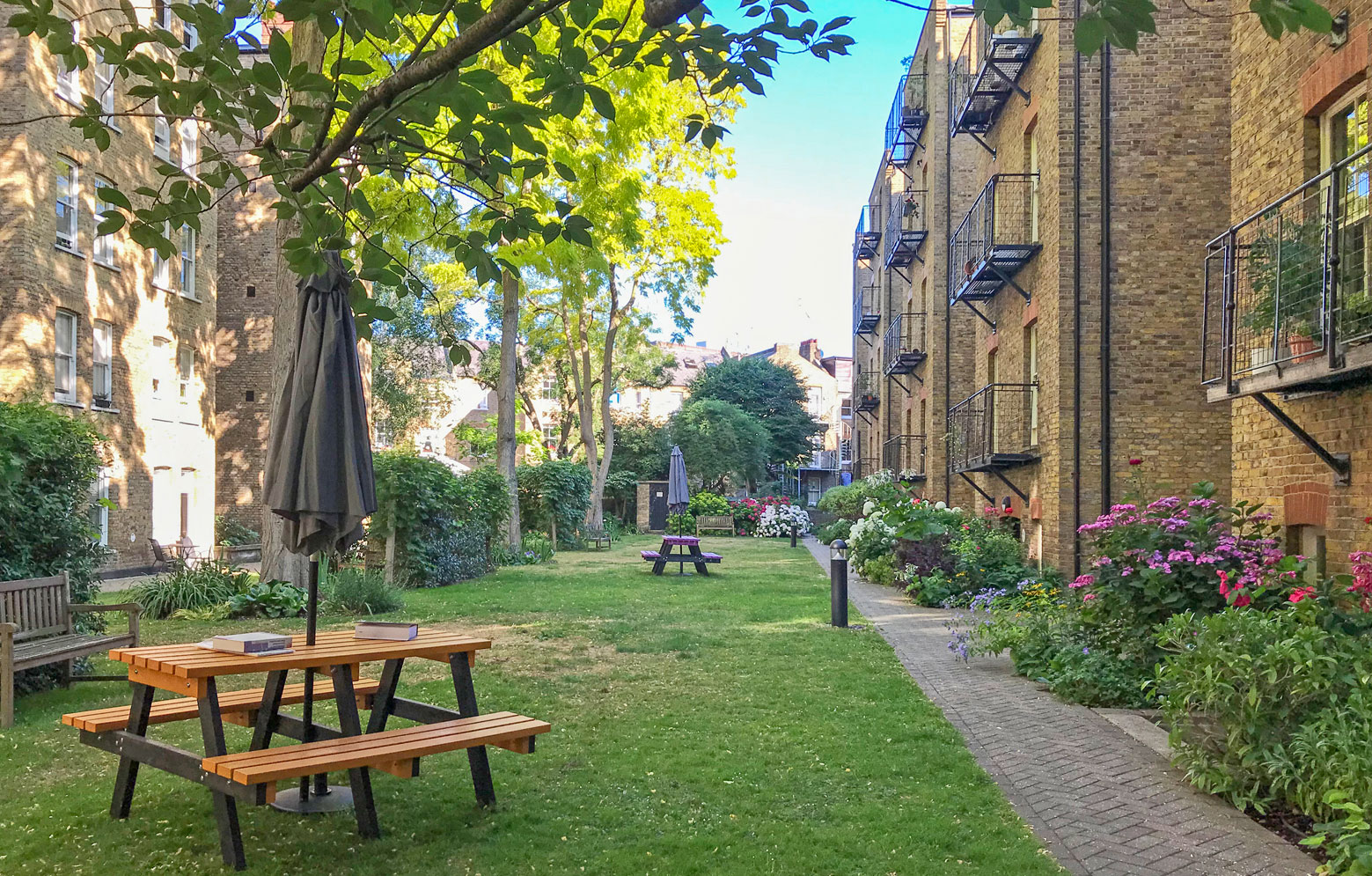 The communal gardens, rather than simply being used for practical purposes, are a beautiful and tranquil place for residents to enjoy, with a lawn that stretches the length, seating areas, more mature trees and an abundance of colourful flowers.